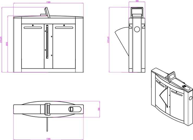 l 經(jīng)授權(quán)人員才能通過,未經(jīng)授權(quán)人員闖入時會發(fā)出聲光報警 l 電機:DC24V 高精度直流電機 l 限位開關(guān):準(zhǔn)確的定位 l 紅外檢測:10對;最小檢測距離8cm,高精度紅外檢測,抗干擾能力強,在陽光直射和陰雨天氣下準(zhǔn)確工作 l 法蘭盤:采用直臂連桿齒輪傳動裝置 l 通行指示燈:LED通行指示燈——綠燈通行,紅燈禁止通行 l 聲光報警:非法操作時會提示聲光報警 l 開關(guān)門速度:30%至100% 速度可調(diào) l 通行等待時間:5至60秒可調(diào) l 工作環(huán)境:室內(nèi)、室外(需加裝雨棚)均可 l 工作模式:常開模式和常閉模式靈活選擇,可雙向讀卡,可單向讀卡,可自由通行,可禁止通行,可讀指紋通行,可刷條碼通行,可人臉識別通行等 l 消防應(yīng)急:消防應(yīng)急信號輸入,接到信號閘機門翼自動打開,可自由出入 l 防尾隨:可檢測到一次刷卡授權(quán)時的尾隨行為并發(fā)出聲光報警,在授權(quán)人員通過后閘機門會立即關(guān)閉,防止尾隨人員進入 l 防逆行:逆向闖入時閘機會發(fā)出聲光報警 l 防夾傷:紅外防夾,在閘機完成一次授權(quán)通行的回位過程中,保護紅外感應(yīng)到有人員在通道內(nèi)時,電機會自動停止運轉(zhuǎn),閘機此時會發(fā)出聲光報警并自動停止工作,保護行人不受傷害,直到行人退出通道,門翼才會關(guān)閉 l 漏電保護:裝有漏電保護裝置,短路自動跳閘 l 自動復(fù)位功能:具有自動復(fù)位功能,即獲得過閘權(quán)限后,在設(shè)定的時間內(nèi)沒有過閘,閘機自動取消本次權(quán)限,恢復(fù)到初始狀態(tài) l 多種刷卡通行模式,以滿足特殊場合使用需求,刷卡一次過一人,刷卡一次可通行多人等 l 具備記憶功能,當(dāng)?shù)谝淮斡行跈?quán)尚未完成時,設(shè)備又接受多次授權(quán)時,可判斷通行人數(shù),直到最后一人通行完成,閘機才自動關(guān)門 l 可判斷授權(quán)通行的方向,當(dāng)A方向授權(quán)時只能從A方向通行,從B方向通行閘機會自動關(guān)閉,直到行人退出通道,閘機又會自動回到打開狀態(tài),等待授權(quán)方向的行人通過 l 可外接雙向流量計數(shù)器,可顯示出通行方向的通行人數(shù), 當(dāng)人通過后,對應(yīng)計數(shù)端口輸出約200寬度的繼電器開關(guān)信號;未通過,則對應(yīng)計數(shù)端口無輸出 l 系統(tǒng)斷電后,門翼自動打開,確保通道暢通,及時疏散人流 l 可根據(jù)客戶需求定制二維碼掃描儀,身份證閱讀器,攝像頭,密碼鍵盤,指紋儀,人臉識別儀,掌紋儀,指靜脈等各種電子產(chǎn)品和生物識別設(shè)備 l 遠(yuǎn)程管理模式,可通過遠(yuǎn)程控制臺實現(xiàn)遠(yuǎn)程控制